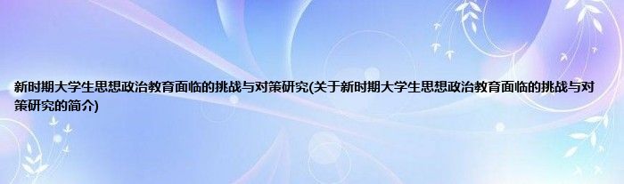 新时期大学生思想政治教育面临的挑战与对策研究(关于新时期大学生思想政治教育面临的挑战与对策研究的简介)