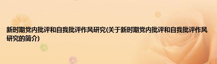 本文关于新时期党内批评和自我批评作风研究的简介就讲解完毕,希望对大家有所帮助。