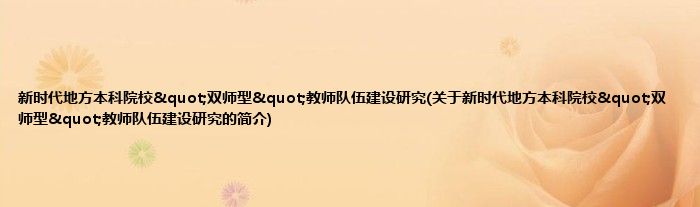 大家好,新时代地方本科院校"双师型"教师队伍建设研究,关于新时代地方本科院校"双师型"教师队伍建设研究的简介很多人还不知道,现在让我们一起来看看吧!