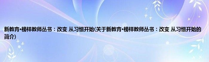 本文关于新教育·榜样教师丛书:改变,从习惯开始的简介就讲解完毕,希望对大家有所帮助。