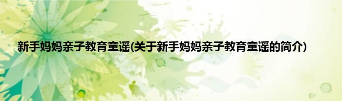 本文关于新手妈妈亲子教育童谣的简介就讲解完毕,希望对大家有所帮助。