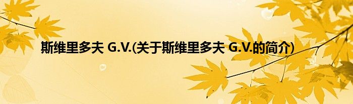 大家好,斯维里多夫,G.V.,关于斯维里多夫,G.V.的简介很多人还不知道,现在让我们一起来看看吧!