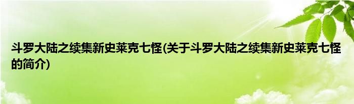 本文关于斗罗大陆之续集新史莱克七怪的简介就讲解完毕,希望对大家有所帮助。
