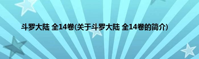 本文关于斗罗大陆 全14卷的简介就讲解完毕,希望对大家有所帮助。