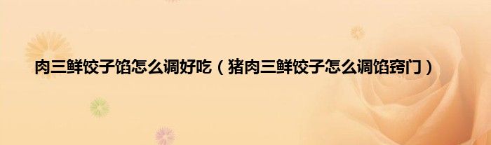 用猪肉三合馅做饺子时,可以在肉馅中加入一些辣椒水或洋葱姜水,以去除肉馅中的腥味,或加入一个鸡蛋,使肉沫更嫩。把准备好的饺子馅放一会儿或者放冰箱里半个小时,会更入味,包装更好。