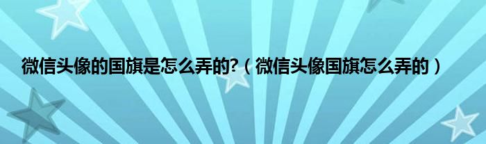 大家好,精选小编来为大家解答以上问题。微信头像的国旗是怎么弄的?,微信头像国旗怎么弄的很多人还不知道,现在让我们一起来看看吧!