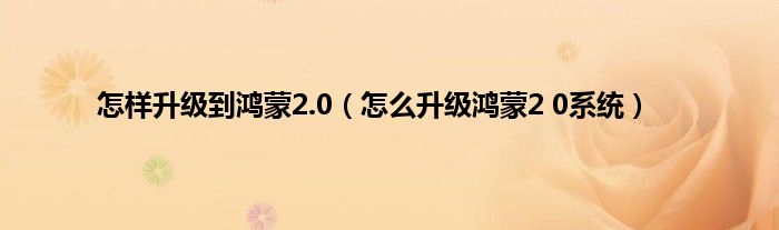 大家好,精选小编来为大家解答以上问题。怎样升级到鸿蒙2.0,怎么升级鸿蒙2 0系统很多人还不知道,现在让我们一起来看看吧!