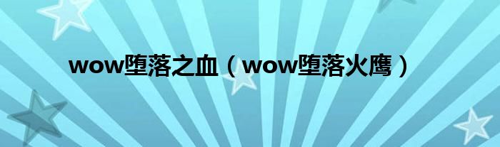 大家好,精选小编来为大家解答以上问题。wow堕落之血,wow堕落火鹰很多人还不知道,现在让我们一起来看看吧!