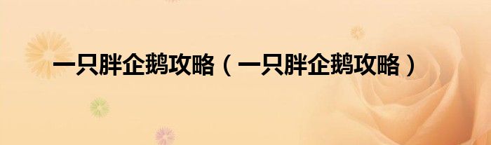大家好,精选小编来为大家解答以上问题。一只胖企鹅攻略,一只胖企鹅攻略很多人还不知道,现在让我们一起来看看吧!