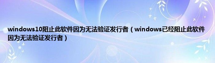 大家好,精选小编来为大家解答以上问题。windows10阻止此软件因为无法验证发行者,windows已经阻止此软件因为无法验证发行者很多人还不知道,现在让我们一起来看看吧!
