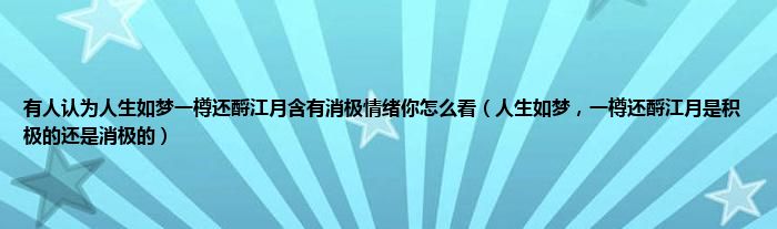 大家好,小常来为大家解答以上问题。有人认为人生如梦一樽还酹江月含有消极情绪你怎么看,人生如梦,一樽还酹江月是积极的还是消极的很多人还不知道,现在让我们一起来看看吧!