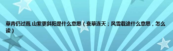 大家好,小常来为大家解答以上问题。草青仍过雨,山紫更斜阳是什么意思,衰草连天;风雪载途什么意思,怎么读很多人还不知道,现在让我们一起来看看吧!
