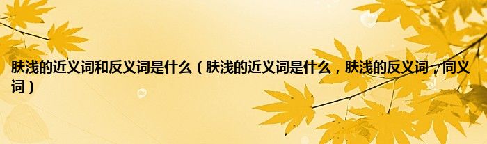 肤浅的近义词:菲薄、粗浅、浅近肤浅的反义词:渊博、精湛一、菲薄[fěibó]1、微薄(指数量少、质量次):待遇~。~的礼物。2、瞧不起:妄自~。~前人。引证:郭沫若《屈原》:“﹝礼物﹞真是菲薄得很,希望阁下笑纳。”二、粗浅[cūqiǎn]浅显;不深奥:像这样~的道理是很容易懂的。引证:鲁迅《南腔北调集·又论“第三种人”》:“这是极显明粗浅的事实,左翼理论家也不会不明白的。”三、浅近[qiǎnjìn]浅显:~易懂。文字~。引证:洪深《电影戏剧的编剧方法》:“毕特金教授,曾经作过一浅近的比喻。”四、渊博[yuānbó](学识)深而且广:知识~。~的学者。引证:柔石《二月》:“你学问是渊博的,哥哥常是谈起你。”五、精湛[jīngzhàn]精深:技术~。~的艺术。引证:徐迟《牡丹》:“一代宗匠李彩云,艺术精湛,传徒尤多。”垍