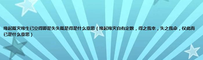 大家好,小常来为大家解答以上问题。缘起既灭缘生已空得即是失失既是得是什么意思,缘起缘灭自有定数,得之我幸,失之我命,仅此而已是什么意思很多人还不知道,现在让我们一起来看看吧!