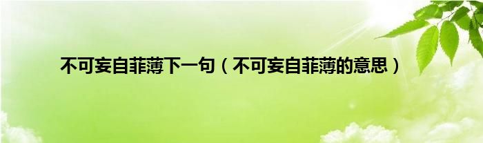 大家好,小常来为大家解答以上问题。不可妄自菲薄下一句,不可妄自菲薄的意思很多人还不知道,现在让我们一起来看看吧!
