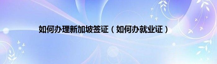 大家好,小常来为大家解答以上问题。如何办理新加坡签证,如何办就业证很多人还不知道,现在让我们一起来看看吧!