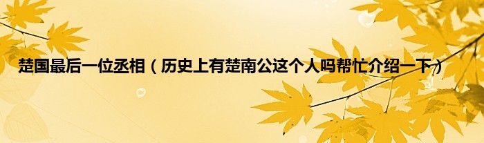大家好,小常来为大家解答以上问题。楚国最后一位丞相,历史上有楚南公这个人吗帮忙介绍一下很多人还不知道,现在让我们一起来看看吧!