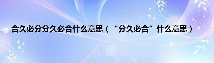 “分久必合”是指人或事物变化无常,分合无定。“分久必合,合久必分”此句也用来表示人物或事情的发展分分合合拥有一定的必然性,是事物发展的规律和必然注定。分久必合,合久必分[fēnjiǔbìhé,héjiǔbìfēn]这句话出自:《三国演义》第一回:“话说天下大势,分久必合,合久必分。”意思是指人或事物变化无常,分合无定。此句也用来表示人物或事情的发展分分合合拥有一定的必然性,是事物发展的规律和必然注定。