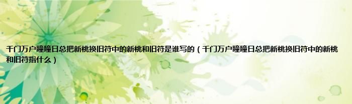 1、都指的是桃符,意思就是把旧桃符换成新桃符。“千门万户曈曈日,总把新桃换旧符”的意思是:家家户户都取下了旧桃符(贴的门神),换上新桃符。