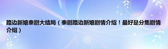 大家好,小常来为大家解答以上问题。路边新娘泰剧大结局,泰剧路边新娘剧情介绍!最好是分集剧情介绍很多人还不知道,现在让我们一起来看看吧!