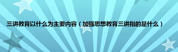 大家好,小常来为大家解答以上问题。三讲教育以什么为主要内容,加强思想教育三讲指的是什么很多人还不知道,现在让我们一起来看看吧!