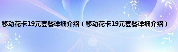 大家好,小常来为大家解答以上问题。移动花卡19元套餐详细介绍,移动花卡19元套餐详细介绍很多人还不知道,现在让我们一起来看看吧!