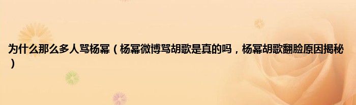 大家好,小常来为大家解答以上问题。为什么那么多人骂杨幂,杨幂微博骂胡歌是真的吗,杨幂胡歌翻脸原因揭秘很多人还不知道,现在让我们一起来看看吧!
