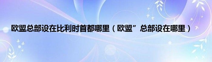 大家好,小常来为大家解答以上问题。欧盟总部设在比利时首都哪里,欧盟”总部设在哪里很多人还不知道,现在让我们一起来看看吧!