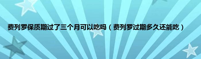 大家好,小科来为大家解答以上问题。费列罗保质期过了三个月可以吃吗,费列罗过期多久还能吃很多人还不知道,现在让我们一起来看看吧!