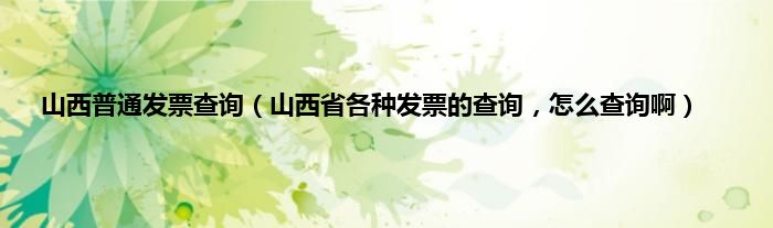 大家好,小常来为大家解答以上问题。山西普通发票查询,山西省各种发票的查询,怎么查询啊很多人还不知道,现在让我们一起来看看吧!