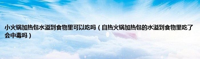 大家好,小科来为大家解答以上问题。小火锅加热包水溢到食物里可以吃吗,自热火锅加热包的水溢到食物里吃了会中毒吗很多人还不知道,现在让我们一起来看看吧!