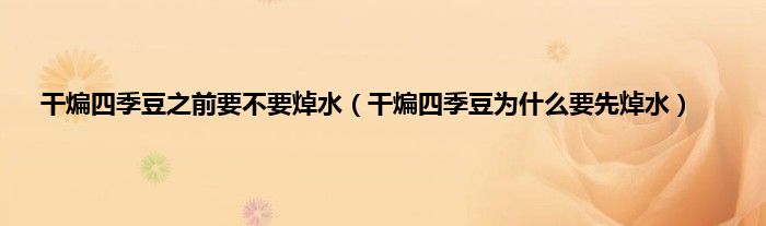 大家好,小常来为大家解答以上问题。干煸四季豆之前要不要焯水,干煸四季豆为什么要先焯水很多人还不知道,现在让我们一起来看看吧!