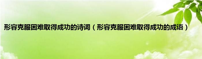 大家好,小常来为大家解答以上问题。形容克服困难取得成功的诗词,形容克服困难取得成功的成语很多人还不知道,现在让我们一起来看看吧!