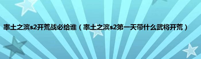 大家好,小常来为大家解答以上问题。率土之滨s2开荒战必给谁,率土之滨s2第一天带什么武将开荒很多人还不知道,现在让我们一起来看看吧!