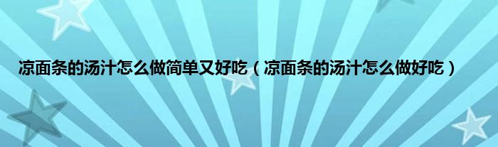 大家好,小科来为大家解答以上问题。凉面条的汤汁怎么做简单又好吃,凉面条的汤汁怎么做好吃很多人还不知道,现在让我们一起来看看吧!