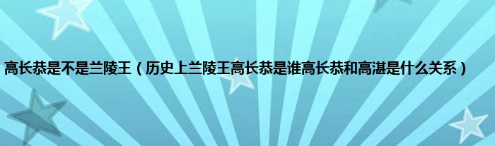 大家好,小常来为大家解答以上问题。高长恭是不是兰陵王,历史上兰陵王高长恭是谁高长恭和高湛是什么关系很多人还不知道,现在让我们一起来看看吧!