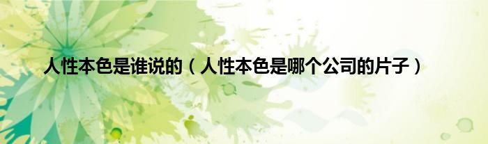 大家好,小常来为大家解答以上问题。人性本色是谁说的,人性本色是哪个公司的片子很多人还不知道,现在让我们一起来看看吧!