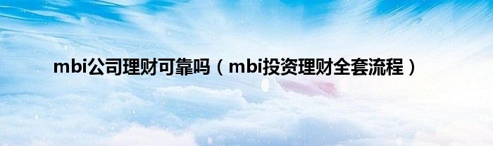 大家好,小常来为大家解答以上问题。mbi公司理财可靠吗,mbi投资理财全套流程很多人还不知道,现在让我们一起来看看吧!