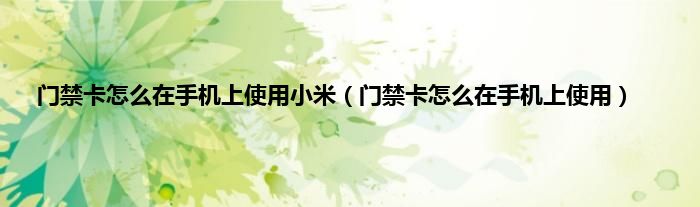 大家好,小常来为大家解答以上问题。门禁卡怎么在手机上使用小米,门禁卡怎么在手机上使用很多人还不知道,现在让我们一起来看看吧!