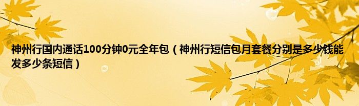 大家好,小常来为大家解答以上问题。神州行国内通话100分钟0元全年包,神州行短信包月套餐分别是多少钱能发多少条短信很多人还不知道,现在让我们一起来看看吧!