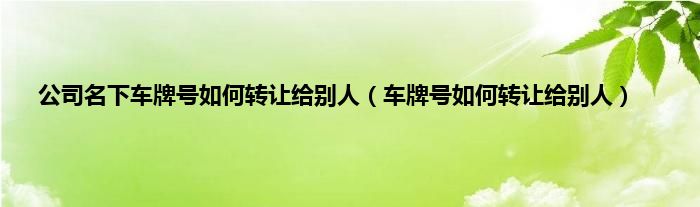 大家好,小常来为大家解答以上问题。公司名下车牌号如何转让给别人,车牌号如何转让给别人很多人还不知道,现在让我们一起来看看吧!
