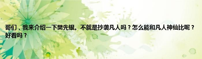 大家好,小常来为大家解答以上问题。哥们,我来介绍一下樊先银。不就是抄袭凡人吗?怎么能和凡人神仙比呢?好看吗?很多人还不知道,现在让我们一起来看看吧!