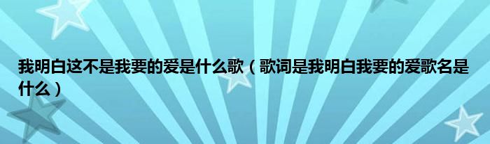大家好,小常来为大家解答以上问题。我明白这不是我要的爱是什么歌,歌词是我明白我要的爱歌名是什么很多人还不知道,现在让我们一起来看看吧!