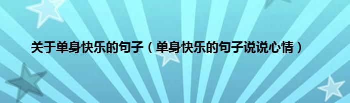 大家好,小常来为大家解答以上问题。关于单身快乐的句子,单身快乐的句子说说心情很多人还不知道,现在让我们一起来看看吧!