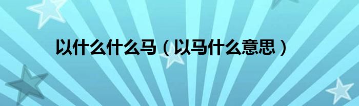 大家好,小常来为大家解答以上问题。以什么什么马,以马什么意思很多人还不知道,现在让我们一起来看看吧!