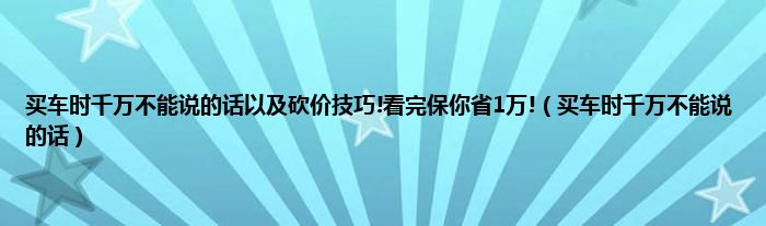 大家好,小常来为大家解答以上问题。买车时千万不能说的话以及砍价技巧!看完保你省1万!,买车时千万不能说的话很多人还不知道,现在让我们一起来看看吧!