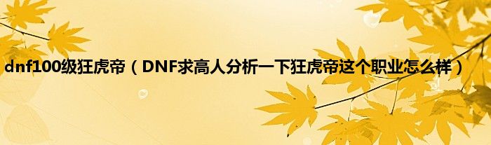 大家好,小常来为大家解答以上问题。dnf100级狂虎帝,DNF求高人分析一下狂虎帝这个职业怎么样很多人还不知道,现在让我们一起来看看吧!
