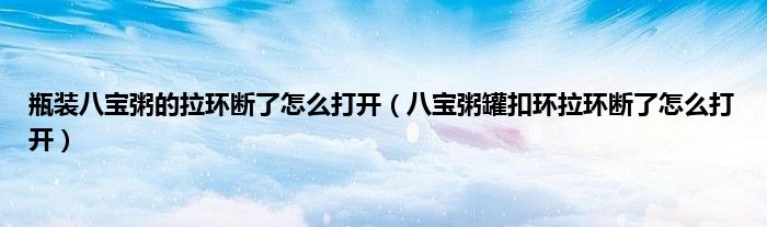 大家好,小常来为大家解答以上问题。瓶装八宝粥的拉环断了怎么打开,八宝粥罐扣环拉环断了怎么打开很多人还不知道,现在让我们一起来看看吧!