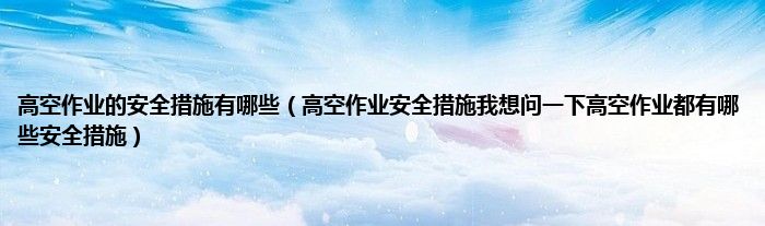 大家好,小常来为大家解答以上问题。高空作业的安全措施有哪些,高空作业安全措施我想问一下高空作业都有哪些安全措施很多人还不知道,现在让我们一起来看看吧!