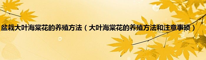 大家好,小常来为大家解答以上问题。盆栽大叶海棠花的养殖方法,大叶海棠花的养殖方法和注意事项很多人还不知道,现在让我们一起来看看吧!
